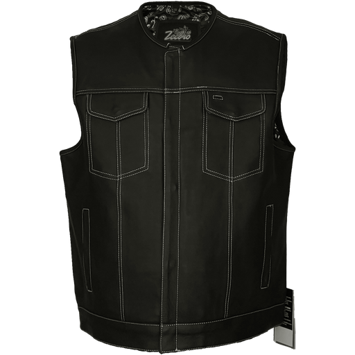 ZeeMen's ANC–07 Aniline Leather Club Vest - White-Threaded Style Leather Following Zeebro's quality standards, premium grade grain-layer distressed...