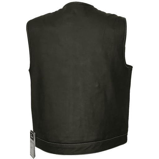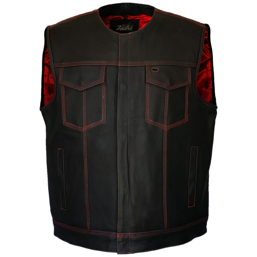 ZeeMen's ANC–24 Red-Threaded Black Leather Club Vest Leather Following Zeebro's quality standards, premium grade grain-layer distressed cowhide lea...